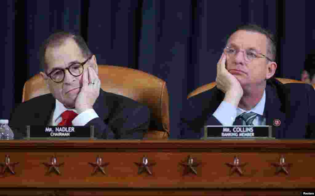 House Judiciary Committee Chairman Rep. Jerrold Nadler (D-NY) and ranking member Doug Collins (R-GA) listen to testimony as the committee holds a hearing to receive counsel presentations of evidence from the impeachment investigation into U.S. President Donald Trump, on Capitol Hill in Washington.
