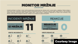 Monitor mržnje kojeg održava misija OSCE u BiH u januaru je zabilježio 11 incidenata potaknutih mržnjom. Broj incidenata je povećan u odnosu na decembar kada su zabilježena tri slučaja.