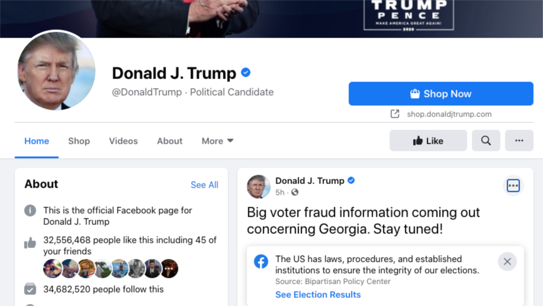 Personal account of Donald Trump in Facebook